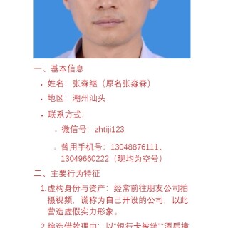 张森继汕头诈骗犯。微信号。zhitji123手机号...